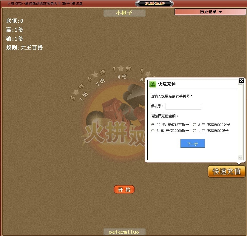 以下是快速充值的图片,“快速充值”按钮在火拼双扣游戏界面的右下角:
