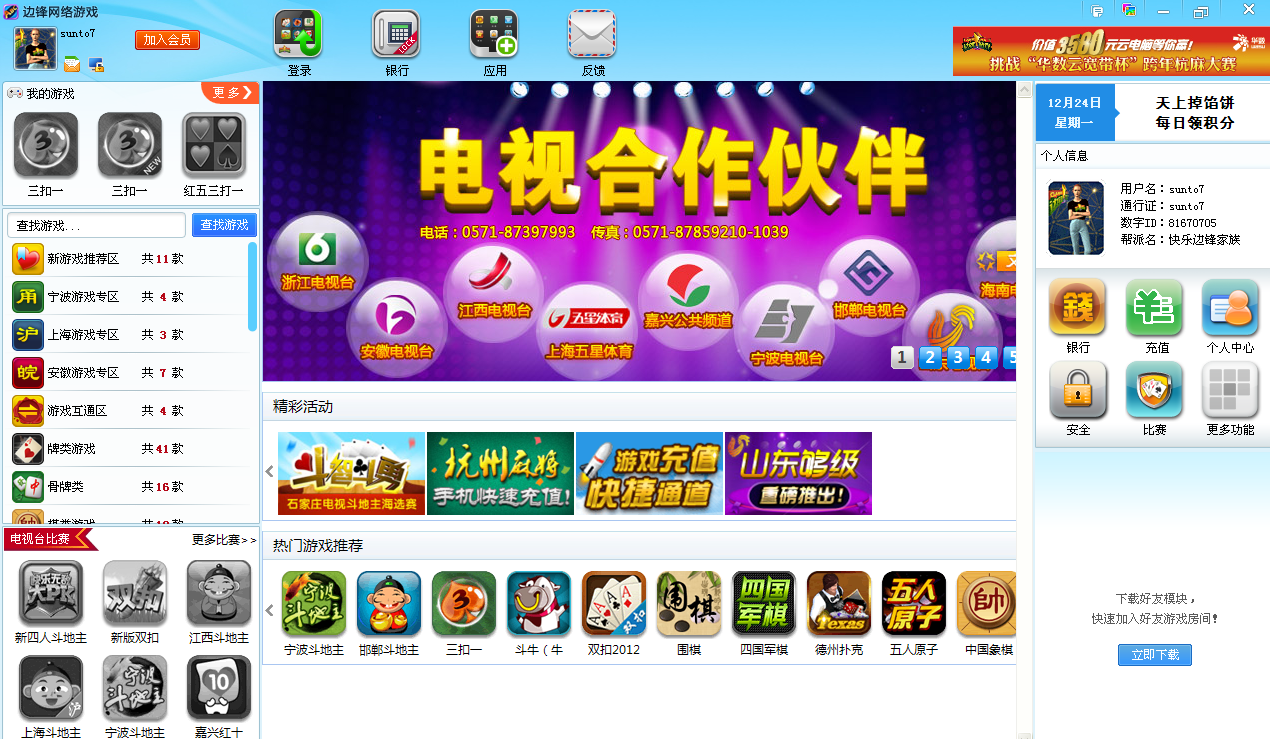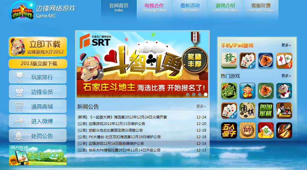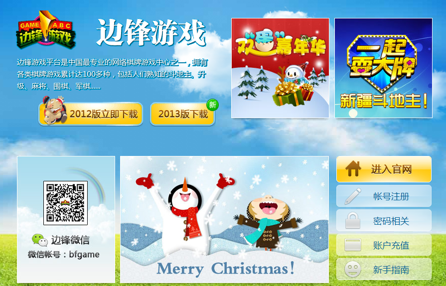 2012年12月24日,是平安夜,也是你我共同欢庆的节日庆典!在这一天,边锋2013版游戏大厅和新版官网浴火新生,新大厅和新官网凝结了边锋运营团队一年来的全部心血,为了给边锋玩家们交出满意答卷,我们在原先的基础上做了更加多的优化和提升!
